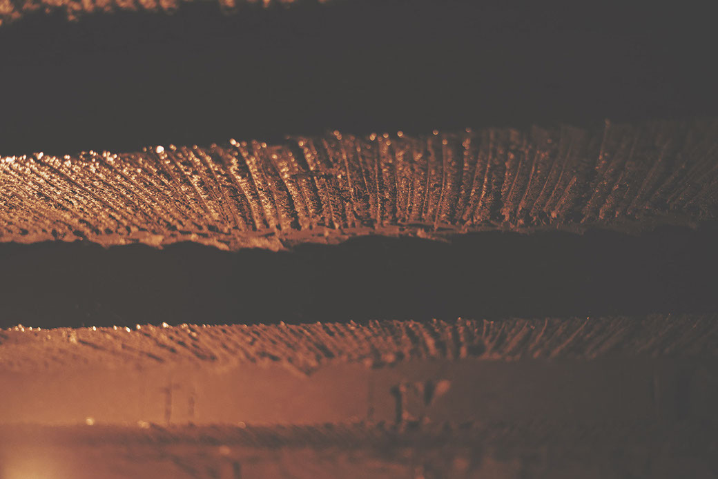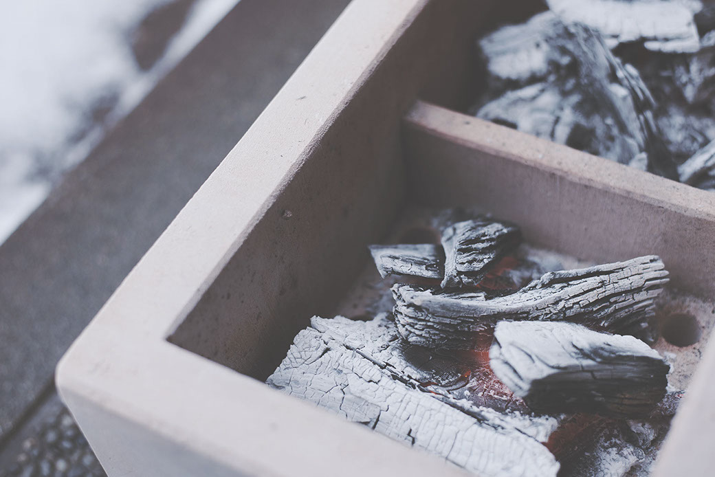 珪藻土は焼かれることにより、多孔性の素材に変化し、この微細な穴が断熱性を高めます。このことにより切り出し七輪は熱が逃げにくく、炭が発する遠赤外線をより効率的に食材に加える事ができ、早く食材の中心まで熱を加えることが可能です。
