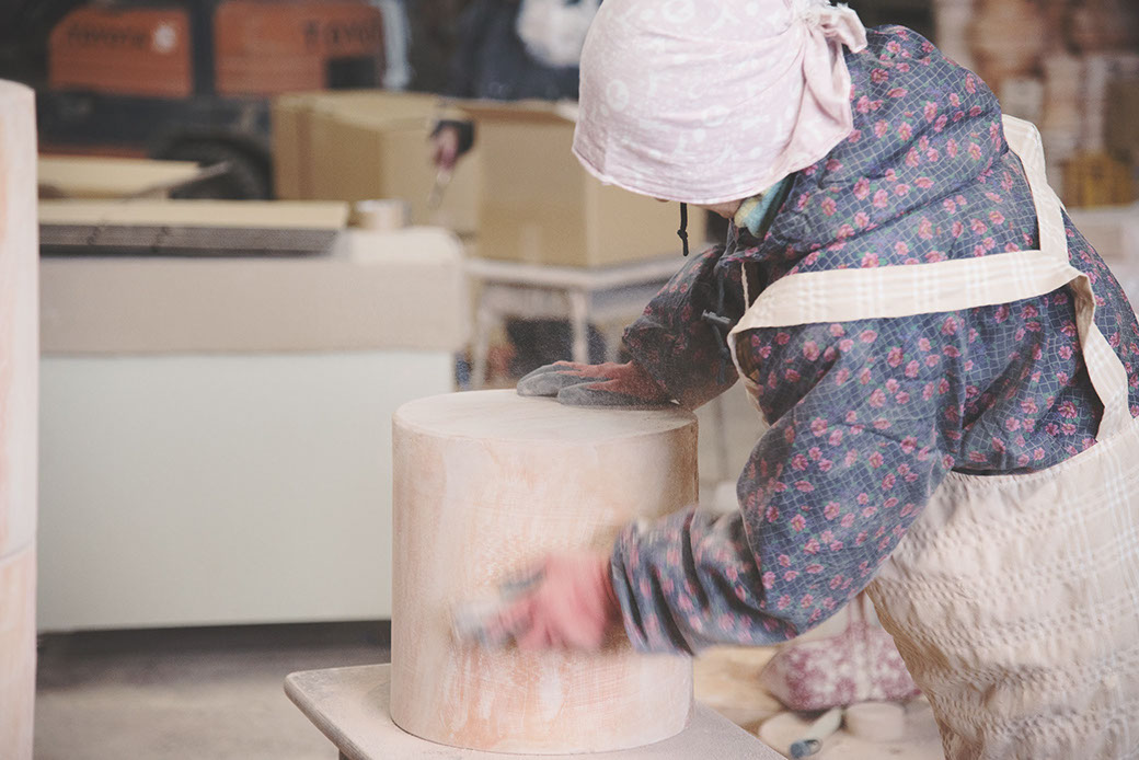 いずれの行程も職人の技術によりなせる繊細な作業。能登半島では古くから珪藻土をかまどや炉の材料に利用してきた。最盛期は20から30社あった切り出し七輪の工場は今は数社となり、伝統を受け継いできた職人もまた少なくなっている。